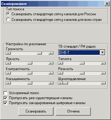В меню сканирования каналов к автоматической коррекции частоты до ближайших стандартных значений и ускоренному поиску, экономящему время при отсутствии каналов с неуверенным приёмом, добавились новый стандарт DVB-T и новая настройка, отвечающая за пропуск закодированных цифровых каналов.
