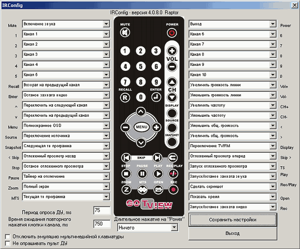 Поддерживается самостоятельная настройка кнопок пульта. Реализована эмуляция функционала мультимедийных клавиатур и сочетаний клавиш, позволяющих использовать пульт в сторонних приложениях, таких как MS MediaPlayer, Zoom Player, BSPlayer, Winamp и т. д. На случай предотвращения потенциальных конфликтов, в настройках предусмотрено отключение этой функции.