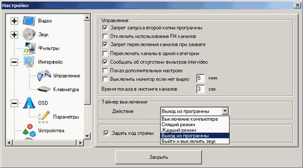 Отметим появившийся в подразделе Управление чекбокс показа дополнительных настроек, избавляющий от необходимости редактирования файла settings.ini в предыдущих версиях программы. Там же находятся таймер выключения и возможность задать код страны, способная помочь при нестандартных региональных настройках операционной системы.