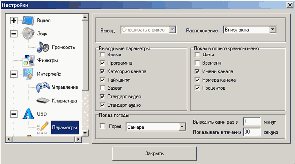 Для управления громкостью отведён целый подраздел, из доступных настроек можно отметить выбор регулировки громкости через системный микшер или средствами DirectSound и раздельную ручную регулировку уровня звука с АЦП для TV- и FM-режимов.