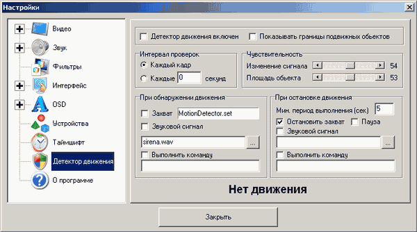 Работа детектора движения рассматривалась в обзоре GOTVIEW PCI DVD, в этой части изменений не произошло.