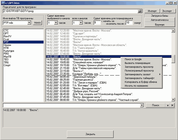 В настройках телепрограммы (доступна на сайте производителя, возможно как ручное, так и автоматическое обновление) добавлен экспорт в HTML или текстовом формате.