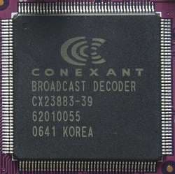 АЦП вызывает некоторое удивление. Тогда как большая часть конкурирующих моделей с интерфейсом PCI использует аналогово-цифровые преобразователи от Philips (в настоящее время полупроводниковое подразделение является самостоятельной компанией NXP Semiconductors с соответствующими изменениями в маркировке новых партий), PCI Hybrid несёт на борту 10-битный CX23883-39 с поддержкой всех существующих видео- и аудиостандартов от Conexant Systems, Inc.. Впрочем, качество изображения, обеспечиваемое этой микросхемой, ничуть не уступает популярным SAA713x, что же касается потенциально интересных отличий в дополнительных возможностях разных АЦП, то о них мы поговорим далее по тексту.