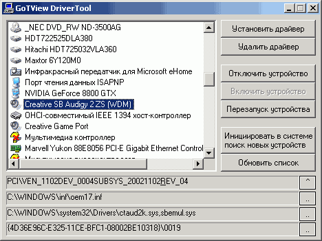 Для удаления драйвера служит доступная на этом же CD и на сайте производителя утилита DriverTool, способная помочь и при установке/удалении других устройств (возможности программы расширяет запуск с произвольным ключом вплоть до «/» без дополнительных параметров).