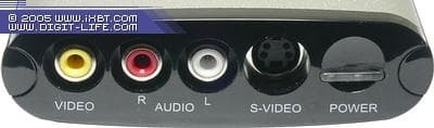 На передней панели находятся стандартные композитные видео- и аудиоразъемы, разъём S-Video и кнопка включения/выключения с красно-зелёным индикатором режимов работы.
