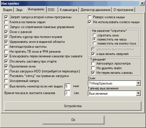 По просьбе автора этого обзора в настройках интерфейса появился запрет на использование колеса мыши. Кстати, с этим связан забавный момент. Через некоторое время аналогичная функция появилась в одной из платных альтернативных программ — ChrisTV.
