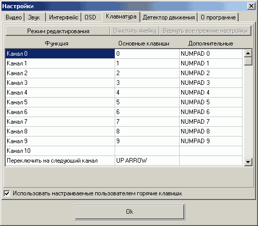 - Индивидуальные настройки видео- и аудиопараметров для каждого канала