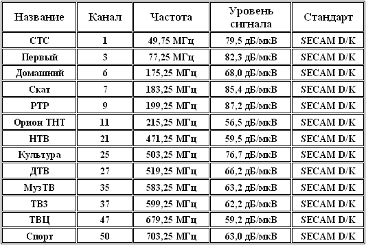 - Три метода поиска каналов (по наличию изображения, по наличию сигнала и комбинированный)