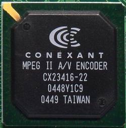 Хорошо знакомый нам MPEG1/2-энкодер Conexant CX23416 отличается изменившимся номером ревизии — 22 вместо 12. Какой-либо информации об отличиях обнаружить не удалось, рискнём предположить, что возможные изменения носят по большей части производственный характер.