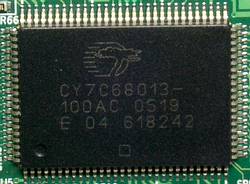 Поддержка USB2.0 реализована при помощи контроллера CY7C68013 от Cypress Semiconductor.