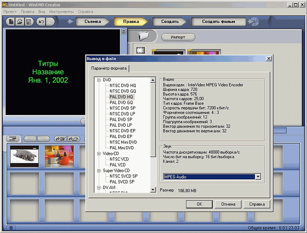 - Поддержка постоянного (CBR) и переменного (VBR) битрейта при кодировании в MPEG1/2