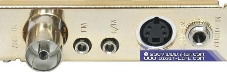 Расположение разъёмов на планке полностью копирует схему, используемую в PCI DVD3 Hybrid и PCI Hybrid. Телевизионная антенна подключается к стандартному разъёму IEC, представляющая собой стандартный диполь FM-антенна — к разъёму mini-jack 2,5 мм. Отметим, что расположенные рядом одинаковые разъёмы для подключения FM-антенны и ИК-датчика пульта ДУ требуют определённой внимательности при установке тюнера. Композитный сигнал полноценно снимается с S-Video разъёма, соответствующий переходник входит в комплект.