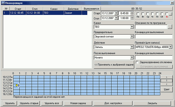 - Поддержка программы телепередач на неделю с возможностью закачки обновления