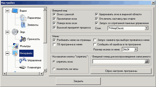 Уникальной возможностью программы является подключение сторонних Direct Show (DS) фильтров и DirectX Media Objects (DMO) как при просмотре, так и при записи, для чего существует соответствующий раздел.