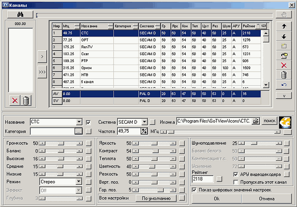 Программа имеет общий интерфейс для TV- и FM-режимов. Как мы уже говорили выше, список FM-станций объединён с телевизионными (в нашем случае аналоговыми и цифровыми) каналами, поиск также осуществляется аналогичным образом.
