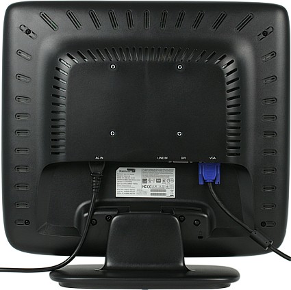 Сзади монитор выглядит не менее аккуратно, чем спереди. Немногочисленные разъемы помещены в неглубокую нишу и ориентированы вниз. Подключать VGA и DVI-кабели относительно удобно, а аудиокабель можно подключить на ощупь, не заглядывая за монитор.