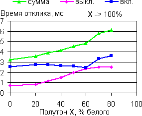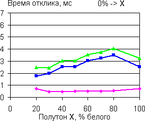 | Времена отклика при переходе между полутонами с разницей 20%. | |