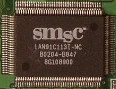 Работой в сети устройство обязано 10/100 Мбит/с контроллеру LAN91C113I-NC от SMsC.