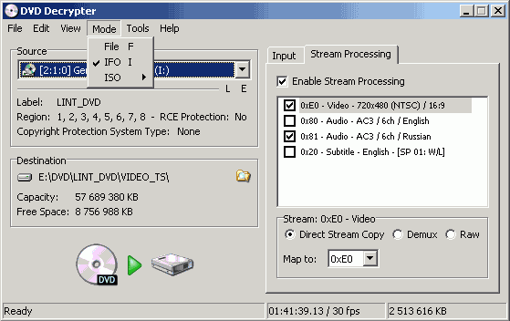 Если отсутствие поддержки wma и wav нельзя отнести к очень серьезным недостаткам, то невозможность работы с DVD и MPEG-4 является пресловутой ложкой дегтя. Казалось бы, привести DVD к файлу MPEG-2 не так сложно, например, используя DVD Decrypter со следующими настройками