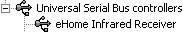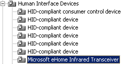 Как уже говорилось выше, пульт представляет собой независимое устройство. Управляющий блок (размеры не позволяют называть его «датчиком») подключается к USB-разъёму, с появлением соответствующих устройств eHome Infrared Receiver в разделе Universal Serial Bus controllers и Microsoft eHome Infrared Transceiver в разделе Human Interface Devices (HID) диспетчера устройств.