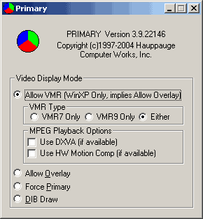 Cтоит отметить запускаемую отдельно (!) программу PRIMARY, позволяющую выбрать видеорендерер и включить аппаратное ускорение DirectX (DXVA).