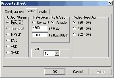 Изменению подвержены разрешение, видеобитрейт (до 12 Мбит/с, два значения в случае использования переменного), количество кадров от одного независимо сжатого (I-кадра) до другого (GOP, Group Of Pictures), аудиобитрейт, формат аудиовыхода и частота дискретизации (32, 44.1 и 48 кГц).