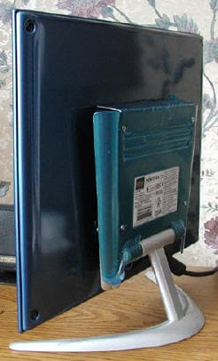 Есть и еще один небольшой недостаток конструкции, присущий практически всем мониторам небольшой толщины: разъем для подключения блока питания на нижнем торце, что делает его подключение несколько неудобным. Впрочем, неудобство небольшое (сложнее обычно в этом случае прикручивать интерфейсный кабель, а он в данной модели припаян) и временное (один раз подключил и надолго забыл об этом). Ну и, раз уж мы заговорили про блок питания, еще один небольшой недостаток монитора, а, точнее, как раз БП: нестандартный разъем и, следовательно, нестандартный сетевой кабель. Если с ним что-то случится, замену найти будет трудно. К тому же, возникает ощущение, что совсем забыли про пользователей UPS (что, как показывает практика, далеко не роскошь, а весьма важное и полезное дополнение к компьютеру): ну нет в продаже кабелей, которые подходят для подключения БП данного монитора к UPS. Со стандартным же разъемом этой проблемы не возникает.