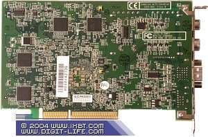 | Интерфейс AGP x8/x4/x2, 128 МБ памяти DDR SDRAM, размещенной в 8 микросхемах на лицевой и оборотной сторонах PCB. Микросхемы памяти производства Samsung (TSOP). Время выборки 4ns, память работает на частоте 200 (400) МГц. Частота работы GPU — 325 МГц. Шина обмена с памятью — 128 бит. | ![]() |