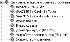 После установки в разделе Sound, video and game controllers диспетчера устройств, обнаруживаются SAA7135 TV Card — TV Tuner и SAA7135 TV Card — Video Capture.