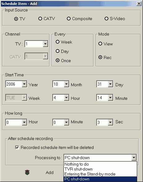Несмотря на ограниченную функциональность (например, почему-то полностью отсутствует поддержка заданий с использованием FM-радио), планировщик научился отключать компьютер после окончания записи.
