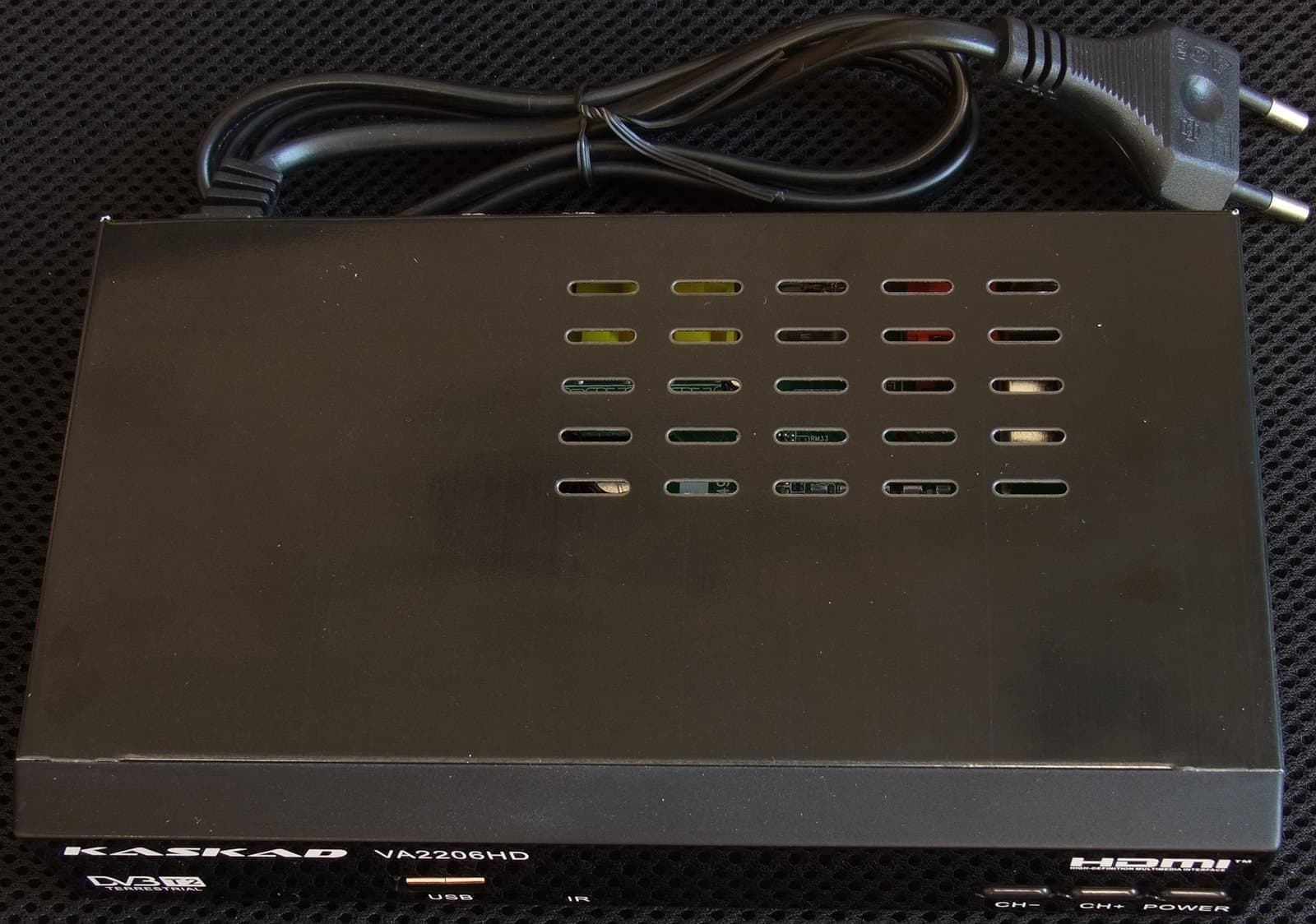 Kaskad VA2206HD имеет металлический корпус, снабженный крупными вентиляционными отверстиями сверху и снизу.