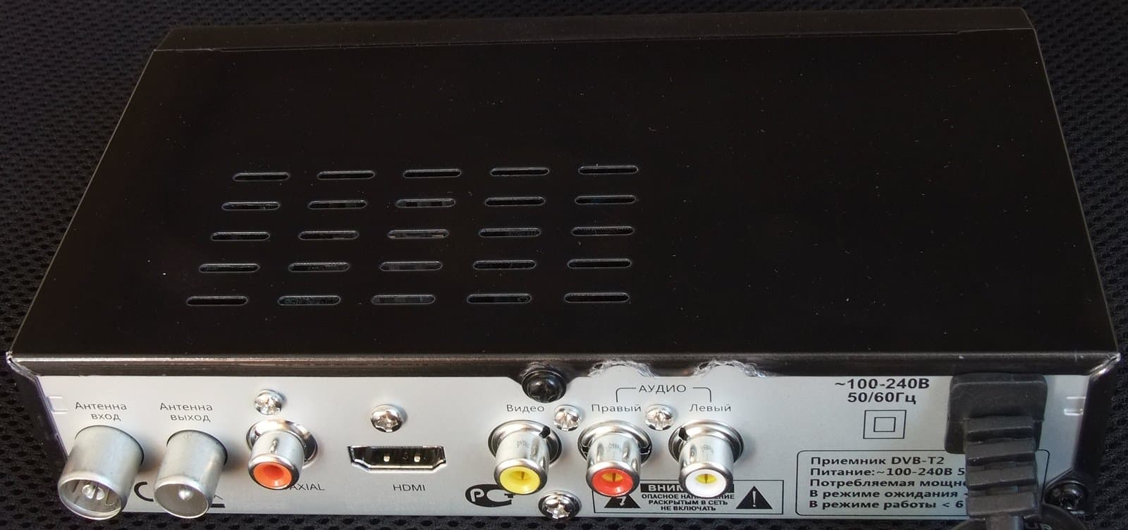 Как уже отмечалось выше, в устройстве реализовано сквозное подключение антенны. Для телевизоров со входом HDMI достаточно соответствующего кабеля, приобретаемого отдельно, в комплект поставки кабель не входит.