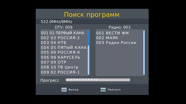 Список эфирных каналов при тестировании