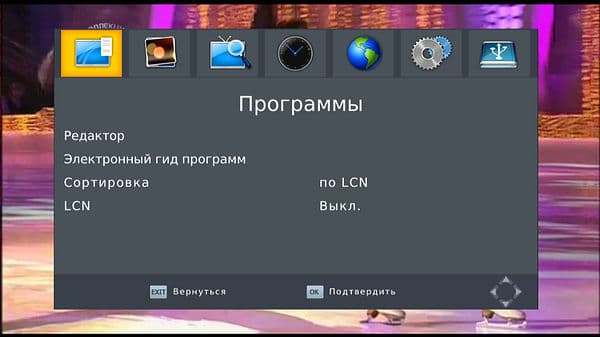 Здесь же находится сортировка по уникальным присвоенным номерам LCN с возможностью отключения, по ONID, по названию сервиса и по ID сервиса.