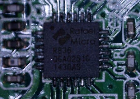 Прием сигнала осуществляется ВЧ-блоком Rafael Micro R836 компании Rafael Microelectronics, закрытым экранирующим кожухом.