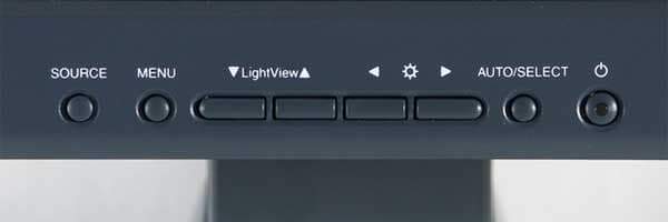Меню на английском языке, организовано стандартно и в меру удобно. На корпусе есть две кнопки, названные LightView. За ними стоит меню быстрого выбора настроек яркости-контраста в зависимости от окружающих условий: DAY Text/Movie/Photo и NIGHT Text/Movie/Photo. Логично, что «дневные» настройки более яркие, а ночные — приглушенные.