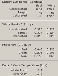 | яркость 100, контраст 75 (заводские) | 6590 | 6430 | 5840 |