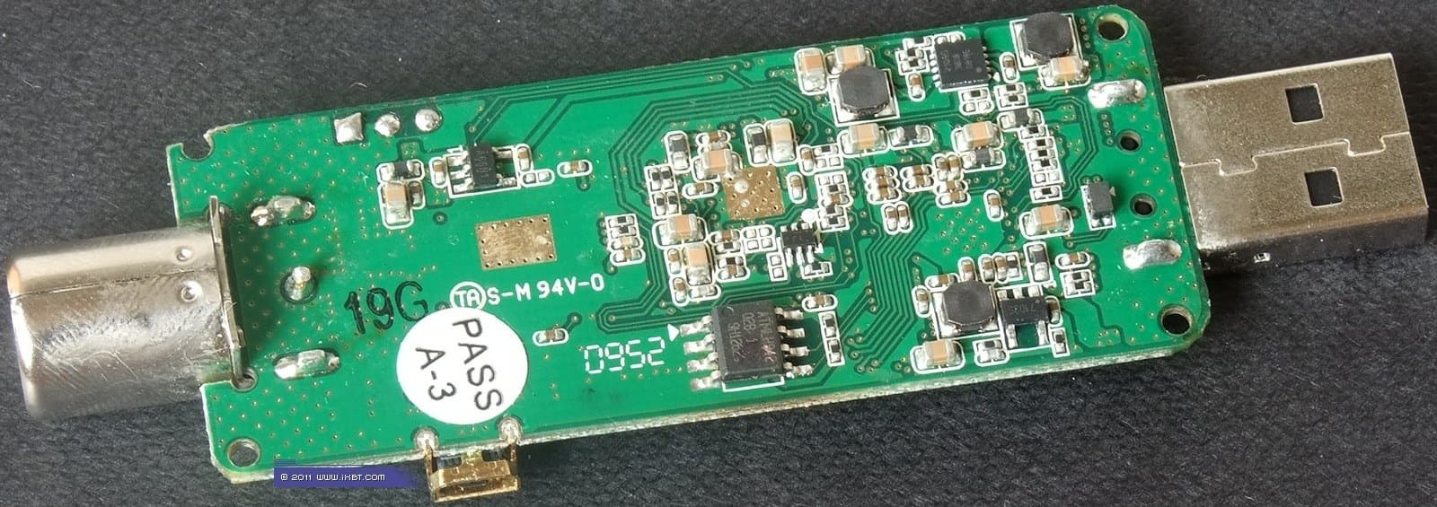 Верхняя сторона подозрительно напоминает внутренности KWorld USB Hybrid TV Stick Pro (UB-424D). Сложно однозначно сказать, что является причиной такого сходства, следование рекомендациям эталонного дизайна от Conexant Systems, Inc. (кодовое имя Polaris) или неисповедимые пути OEM/ODM-производства, но схожесть маркировок на плате (HU410 у тюнера KWorld и HU412 у тюнера Leadtek) свидетельствует в пользу второго варианта. Ничего удивительного или компрометирующего в этом нет, перед нами обычная для компьютерной индустрии картина.