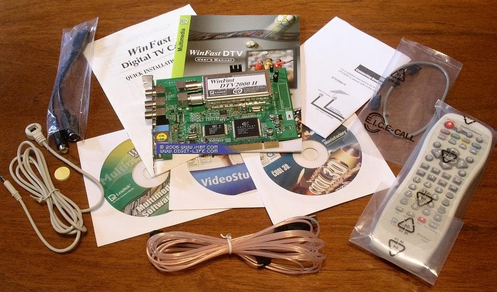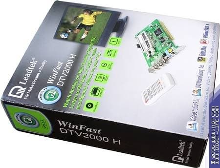 Коробка Leadtek WinFast DTV2000 H представляет собой образец нового дизайнерского стиля, в настоящий момент распространяющегося на все мультимедийные продукты этого производителя. Двухцветное оформление — чёрный цвет в сочетании с индивидуальными для каждой модели цветовыми вставками (в нашем случае зелёными), выглядит довольно эффектно.