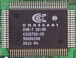 Для работы в DVB-T режиме предназначен COFDM демодулятор Conexant CX22702-25.