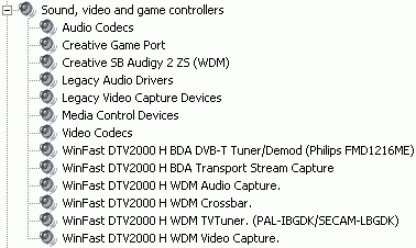 После установки получаем 6 (!) устройств в разделе Sound, video and game controllers