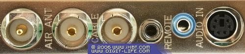Благодаря полноразмерному дизайну, появление второго антенного разъёма не привёло к существенным коммутационным неудобствам. Для подключения внешних аудиоисточников используется разъём mini-jack 3,5 мм. Источники видеосигнала подключаются к разъёму Mini-DIN 6-pin посредством переходника, имеющего S-Video и композитный входы.