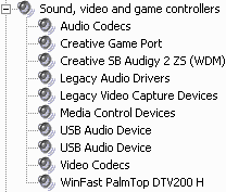 После установки в разделе Звуковые, видео и игровые устройства появляется устройство WinFast PalmTop DTV200 H,