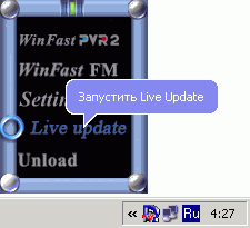 а в системном трее — иконка программы WinFast Wizard, отвечающей за работу планировщика и пульта ДУ.