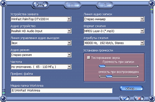 Для работы в FM-режиме предназначено отдельное приложение WinFast FM. Язык интерфейса программы зависит от региональных настроек операционной системы.