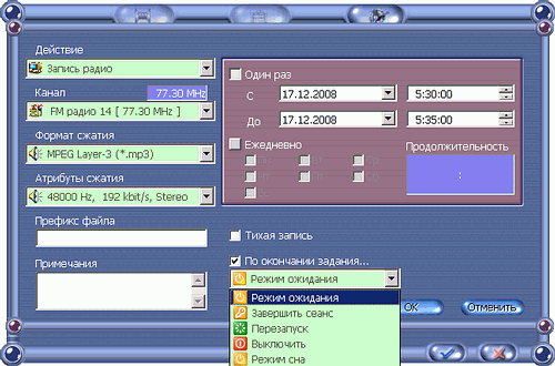 Отдельный планировщик WinFast FM также поддерживает отключение компьютера и переход в энергосберегающие режимы после выполнения задания.
