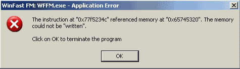 Без ложки дегтя тоже не обошлось, почему-то в процессе записи WinFast FM иногда выпадает на рабочий стол вот с такими ошибками.
