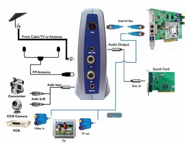 Причем подключить в обычный разъем Video-In на карте другого производителя не получится, так как разъем для подключения (надпись EXT. BOX) чуть больше стандартного.
