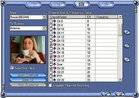 после чего появляются все каналы. Секрет функции Adaptive Channel Scanning проясняется сразу, обратите внимание на изменение надписи в окне Area с Russia (SECAM) на Custom Defined, то есть сканирование всего диапазона, причем если выбрать Custom Defined сразу (последняя надпись в столбце стран) — результат будет тот же. Что послужило причиной такого казуса, неверные представления инженеров Leadtek-а о нашей сети или же неверные представления наших телевизионщиков о вещательной сетке — сказать трудно.