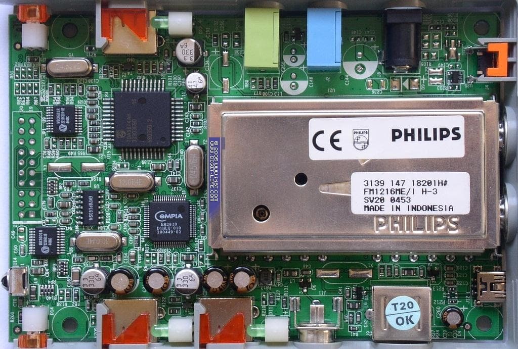 Работа с интерфейсом USB2.0 организована при помощи контроллера EM2820 от EMPIA Technology Inc.